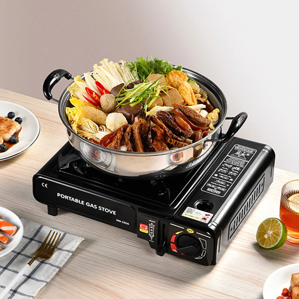 Quemador portátil estufa de butano Camping Gas con estuche de transporte estufa de mochilero para acampar senderismo cocina Característica: 1.Materiales de alta calidad:Este quemador portátil está construido con materiales cuidadosamente seleccionados, duraderos y resistentes a altas temperaturas, lo que garantiza una experiencia de cocción superior y un rendimiento constante en entornos al aire libre.El uso de materiales de primera calidad mejora su longevidad y confiabilidad. Especificación: Origen: China continental Tamaño: 340,00x280,00x110,00 mm/13,39x11.02x4,33 pulgadas Color: como se muestra Material: acero inoxidable Tipo: Estufa casete Nota: