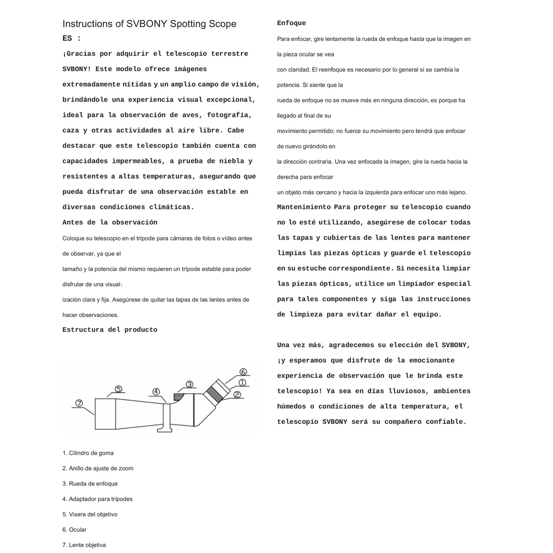 Número de modelo: SVBONY SV28/SV28 PLUS 25-75x70 Spotting Scope